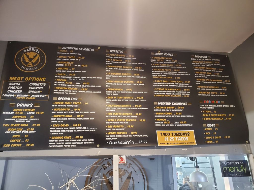 Menu Barrios Taco Grill Menu PLACE AN ORDER ONLINE* *Prices subject to change without notice. Taco Truck Menu (Online Ordering Coming Soon)